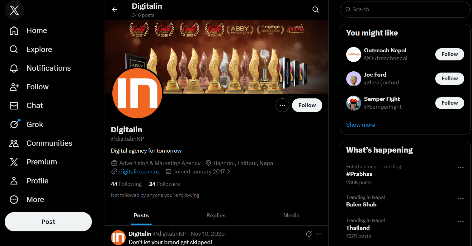 Recognized as one of the leading advertising agencies in Nepal, DigitalIn delivers result-driven solutions powered by the latest digital marketing innovations, helping brands stay ahead and connect with the right audience.